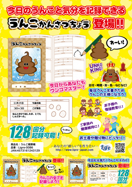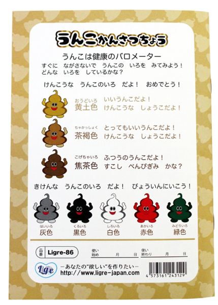 ![]() 毎日の体調管理にうんこ日記をつけよう!日付、時間、うんこの形や色などの状態管理用の項目のほか、ひとこと日記など一冊で128回分の記録が可能♪夫婦やカップルさん、家族みんなが毎日元気でいるために。