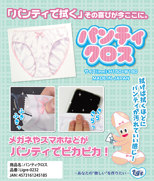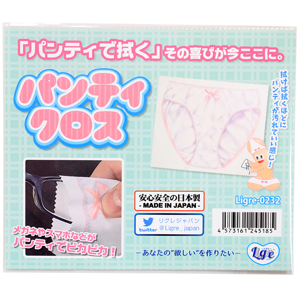![]() これを使って拭き拭きしよう♪あれ?よく見るとパンティじゃん♪というジョーク系グッズのパンティクロス!丁度良いサイズで眼鏡でもスマホでも何でも簡単に拭き拭き出来ます♪使い込んでいくことで汚れたりシミが出来たりと味わい深いオリジナルなパンティクロスになっていきます。