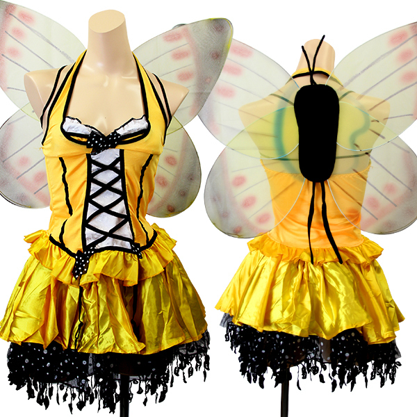 ![]() カラフルで大きな蝶々フォルムの羽付き♪セクシー&キュートなミツバチ風のコスプレ衣装。