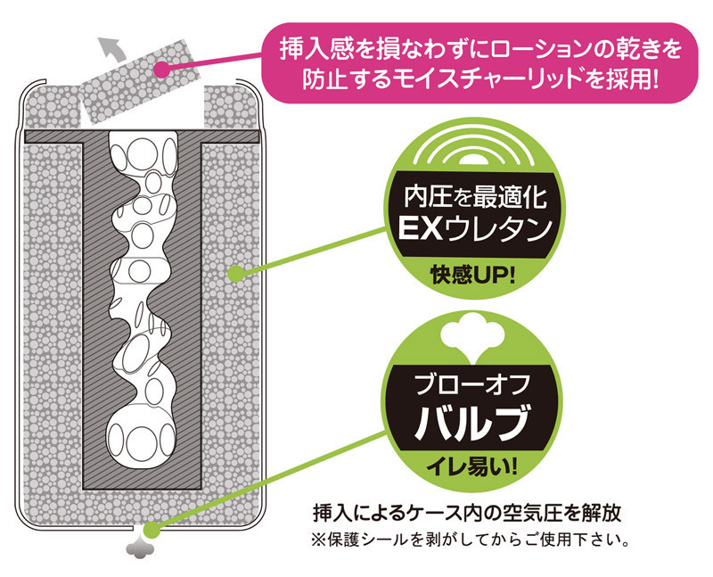 ![]() トイズハートのこだわりが詰まったオナカップが登場!カップ上部には、ローションの乾きを防止する厚めのフタを採用!後処理の簡単な洗い不要ローションがたっぷり充填されているので、ヌキたい時にすぐ使えます!こちらは大きくワインディングした膣内の大型イボが、確実な刺激をもたらす「ノーマル」タイプ!内部は内圧を最適化する「EXウレタン」を使用し快感もアップ!底部にはカップ内の空気を開放できるバルブも付いた、とっても便利なオナカップです。