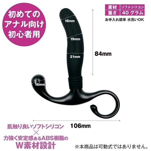 先端が細い初心者向けの形状で初めてでも安心。 先端が細くなった初心者用エネマディルドです。 肛門、会陰部、前立腺と、様々なポイントを刺激できる独特の形状で、男性でも女性のような快感が得られるドライオーガズムを手軽に楽しめます。 持ち手部分は丈夫なABS樹脂、挿入部分は肌触りの良いソフトシリコン製で使い易さ抜群。 ステップアップとして、中級者用のミディアム、上級者用のエキスパートもご用意しています。 ![]() --![]() ビギナー![]() パッケージ:17.8×13.5×3.0cm 本体:挿入部全長8.4cm・幅1.6〜2.1cm 重量:40g![]() [ BACK ]