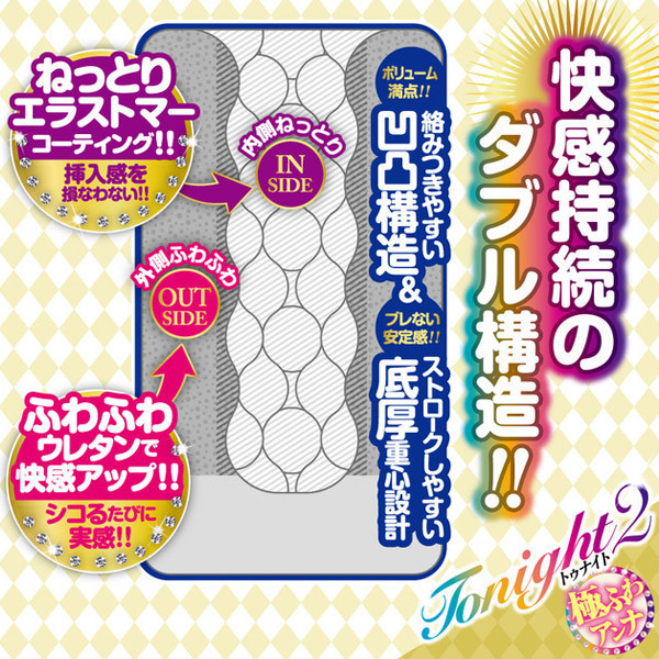 ![]() 前作「トゥナイト」に続き、肉厚なふわふわウレタンが包み込む極ふわverのオナホ「トゥナイト2」が登場。