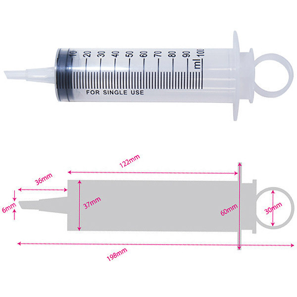 ●医療系グッズのMEDYシリーズ●お手軽なプラスチック製●容量たっぷりの100ml●注入量が一目で分かる目盛り入り●片手でも簡単に注入できるリング付き●小口径の延長キャップも付属。 付属の延長キャップを装着すれば、初心者の方でも使える小口径4mmに早変わり!延長キャップはプランジャー下部に固定されているので保管の際も安心です。 ![]() --![]() No.2![]() パッケージ:21.0×8.0×5.0cm 容量:100ml![]() [ BACK ]