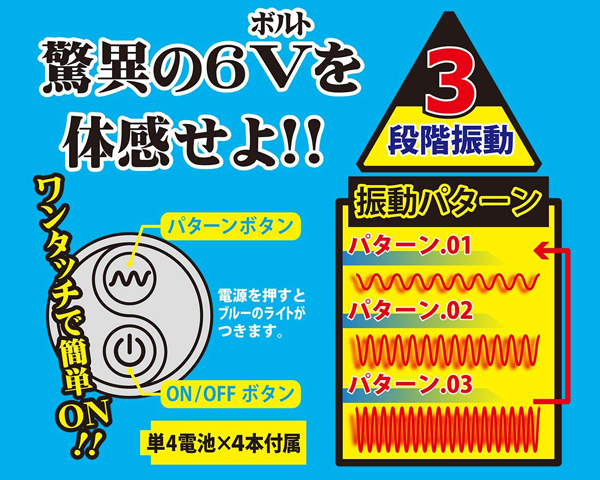 ![]() 簡単な操作でパワフルな快感!6ボルトの振動を手軽に楽しめるシンプルなシングルローターです。