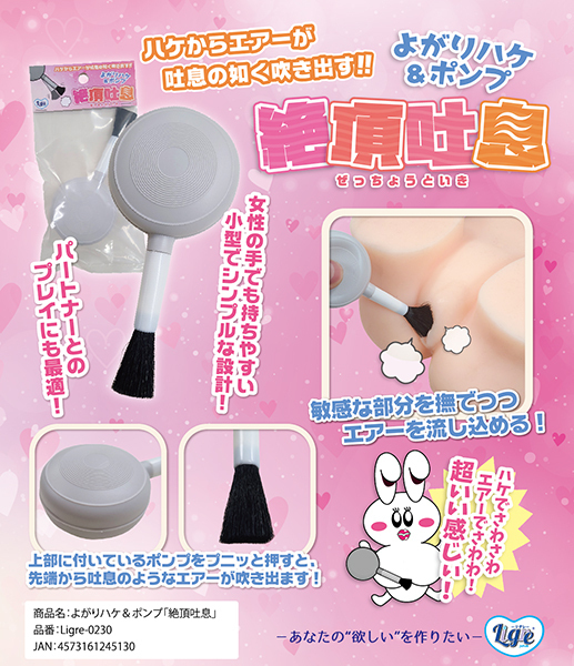 ![]() じわじわと感じながら楽しめるハケプレイ!吐息のような空気を発するポンプ機能をプラスした「絶頂吐息 よがりハケ&ポンプ」。