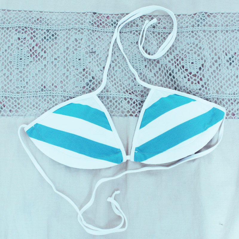 ![]() パステルカラーがラブリー!ホルターネックタイプのしましま三角ビキニブラ。