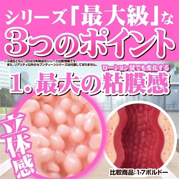 改めて二次元と三次元におけるリアルさを追求し、新たなホンモノ体験を具現化することに成功しました。 具体的に一番の試行錯誤ポイントは、素材の硬さです。 最終的にこの硬度に落ち着いた理由としては、イボ=粘膜感としてのリアルが再現できた為です。 絶妙なバランスでイボではなく、まるで粘膜のように感触を感じられ、最終的には満場一致でこの硬度に決定しました。 ローション注入量によっても粘膜感が格段に変化することも特徴のひとつです。 自分だけの丁度良いローション量を探りながらホンモノ体験を楽しんでいただければ幸いです。 ![]() --![]() リアリティ![]() 非貫通型 パッケージ:21.0×15.0×7.0cm 本体:15.5×6.8cm・内部長14.0cm 重量:370g![]() [ BACK ]