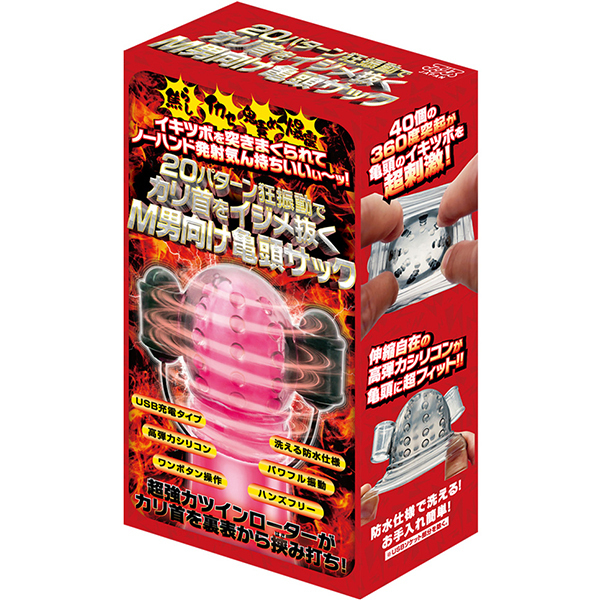 20種類の振動パターンがカリ首を的確に刺激し、ハンズフリーで楽しめる仕様!高弾力シリコンで亀頭をしっかりホールドし、内蔵された40個の突起が絶妙なイキツボを刺激します♪パワフルなツインローターで裏表からカリ首を責め立て、絶頂へと導きます!USB充電式で、ワンボタン操作が簡単便利。 防水仕様だからお手入れも簡単で、いつでも清潔に保てます♪手になじむリモコン形状で、あなたのオナ活をより一層楽しませてくれること間違いなし! ![]() --![]() --