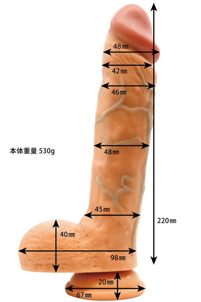 内蔵された硬芯を、握ると生体感のある柔らかな皮で包み込んだ二層構造!徹底された肉感弾力は使用面ほかリアルさを更に加速させ、男根のように生々しい見た目で貴方の性欲を思う存分満たします。 底面には壁や床に貼り付けられる吸盤付き!長さ約24cmの巨根を是非ご体感ください。 ![]() --![]() Z05![]() パッケージ:24.0×11.0×8.0cm 本体:24.0×4.8cm 重量:530g![]() [ BACK ]