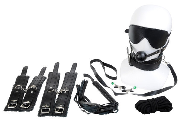 ●ブラックカラーの合皮製●内側は柔らかな起毛素材●リード付きの首枷ベルト●ベルト式の手枷&足枷●フィットするアイマスク●ボール付きのベルト口枷●鈴付き乳首クリップ×2●緊縛プレイ可能なロープ●スパンキング用バラ鞭。 SMに興味はあるけど、どれを買ったらいいかわからない…そんな方にもぴったり♪基本的な計8種類の厳選SMグッズを詰め合わせた豪華なSMプレイセット!統一感のある本格派デザインながら、安全に配慮された設計で初心者の方でも気軽にお楽しみいただけます。 ![]() --![]() --