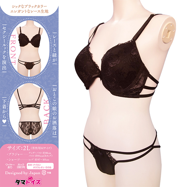 ![]() おとこの娘専用デザインの本格ブラ&ショーツセットが登場♪下着から可愛くお洒落を楽しみたいあなたへ!股間にはワレメカップ付きで、綺麗なくっきり一本筋をリアルに再現♪ショーツの食い込み面はパッドでしっかり成形、魅惑のキャメルトゥを演出します!ヒップはシースルーレースで大胆セクシーなハーフバック仕様♪ブラはワイヤー&着脱可能パッド入りで胸元をふっくらボリュームアップ!レースと紐が絡み合うセクシールックは、可愛いのに着け心地も快適です♪おとこの娘にぴったりの2Lサイズ(男性用M相当)でフィット感抜群!胸囲約93cm、ヒップ97〜105cm対応で美しいシルエットに♪こだわりの日本デザインで、おとこの娘ライフを華やかに演出します!●TMT-1817