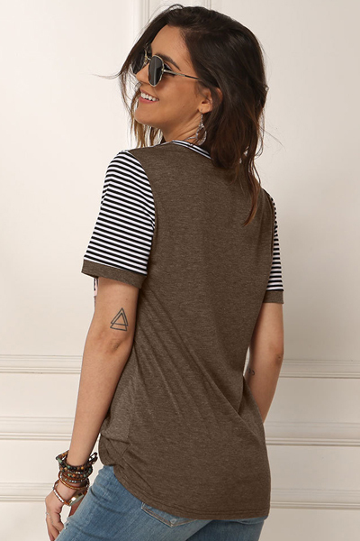 ![]() 胸元でヒョウ柄に切り替えたブラウンカラーの半袖Tシャツ。