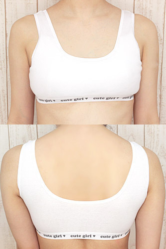 ![]() キュートガールに変身!純白リブ編み仕様のリアルなスポーツブラ単品(M)。