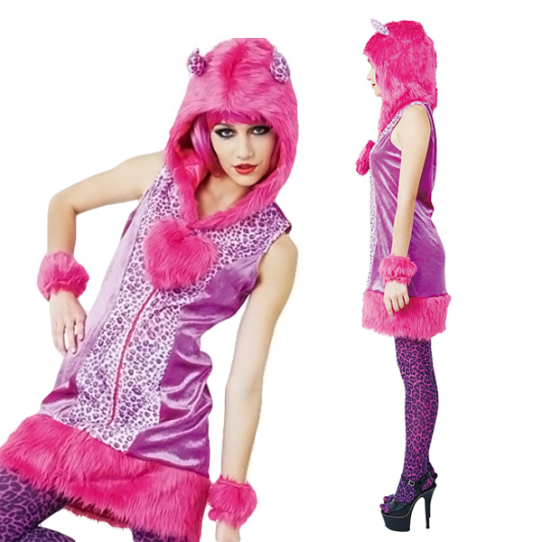 ![]() 人とかぶらない個性的なハロウィン仮装をお探しの方に!フューシャピンクのビビッドなカラーが注目度抜群な、可愛いヒョウ柄の悪魔コスプレ。