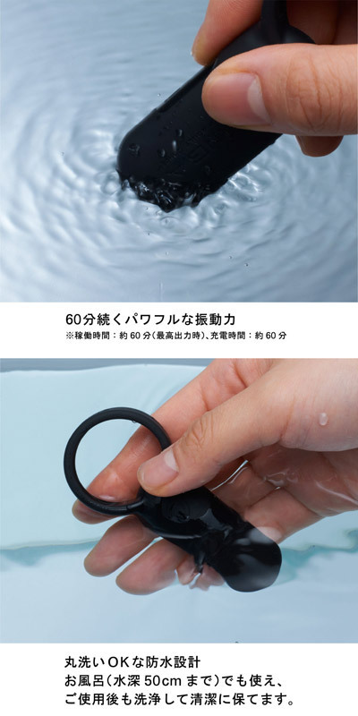 ●カップル専用サポートグッズ●フィット感抜群の安心シリコン素材●繰り返し使える充電式のパワフル振動●振動強弱は5段階、振動パターンは2種類●丸洗いできる防水仕様(水深50cmまで)●USBによるフル充電60分で最大約60分稼動●ウォーターベースのローションのみ併用可。 シリコンリングを男性自身の根元に装着してスイッチオン!指に装着すればスマートフォルムの愛撫用ローターにも変身。 ダイレクトな振動でいつも以上に濃厚なラブタイムをお楽しみ頂けます。 ※ACアダプタは付属しません。 充電には別途パソコン、もしくはUSB端子のついたACアダプタが必要です ![]() ブラック![]() --