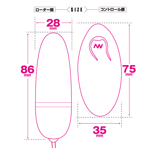 ローター部は全長86mmで最大径28mm、製品素材はシリコーン・ABSを使用しているので使用感は滑らか♪電源は単四電池1本で使い勝手も抜群!これを使って誰でもすぐイカせるテクニックを手に入れよう♪ ![]() --![]() NEO![]() パッケージ:16.5×9.0×5.0cm 本体:ローター8.6×2.8cm・コントローラー全長7.5cm 重量:182g 電池:本体(単四電池×1本使用)、コントローラー(単四電池×1本使用)![]() [ BACK ]