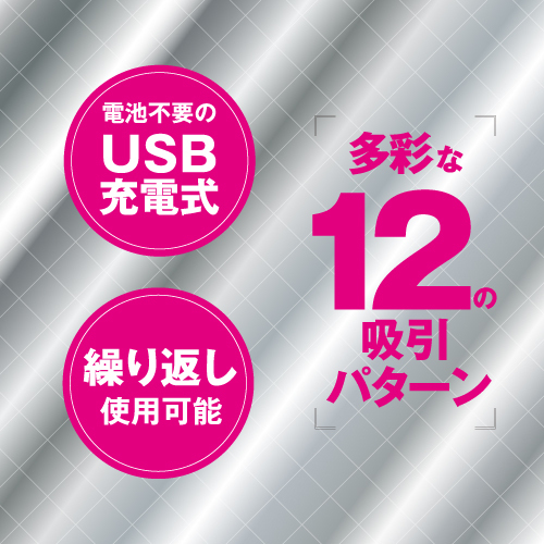 ![]() 吸いすぎ注意!?パワフル吸引がクリを一点突破!多彩な12の吸引パターンを内蔵!乾電池不要のUSB充電式。
