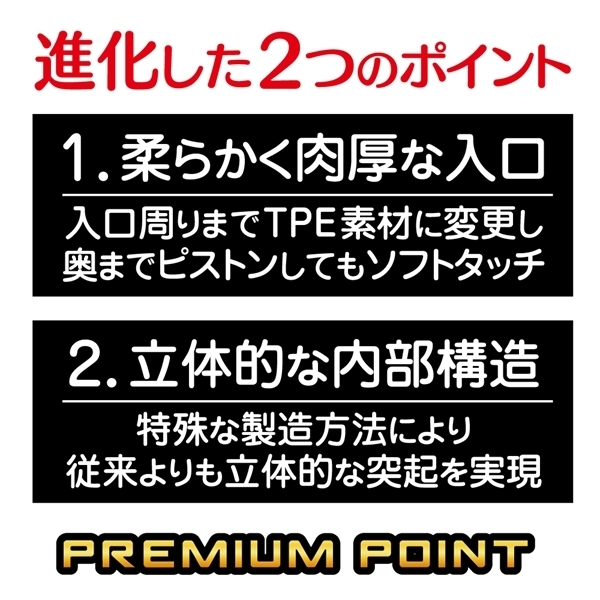 ![]() 非貫通オナホとして瞬発力を重視したクイックタイプです♪10年以上にわたり愛されてきた定番シリーズが、プレミアム仕様でさらに進化しました!入口には肉厚で柔らかい素材を採用し、手にしっかりなじむ形状になっています♪内部にはイボとヒダがぎっしり配置されており、動きに応じて刺激の変化を楽しめます!上下で異なる凹凸構造になっているため、向きを変えることで新たな感触を体験できます♪ローションは充填済みで、開封後すぐに使用できる便利な設計です!重さは約155gで持ちやすく、使い捨てタイプながらしっかりとした操作感も魅力です♪非貫通構造で衛生的に使え、手軽さと機能性を兼ね備えたおすすめのアイテムです!クイックに満足したい方にぴったりの一本です♪