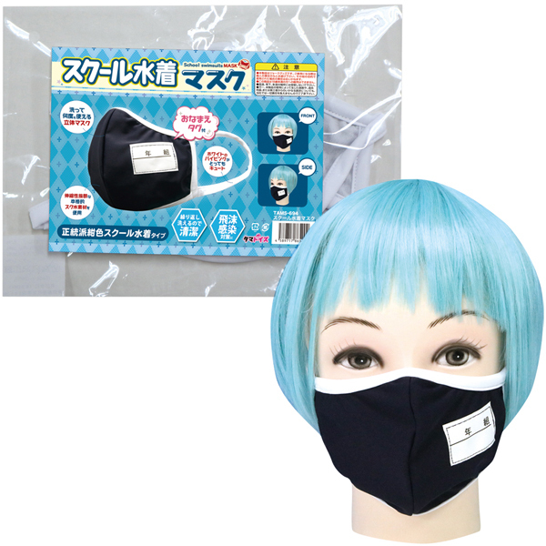 ![]() ゼッケン入りの本格派仕様!伸縮性に優れたネイビーのスク水素材に白パイピングを施した正統派スクール水着風のユニークな立体マスク。