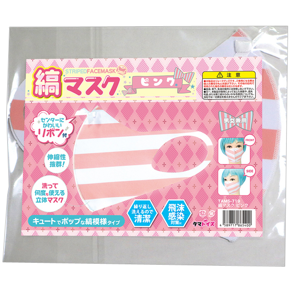 ![]() 顔にピタッとフィットする伸縮性抜群の可愛い縞パン風立体マスク(ピンク)。