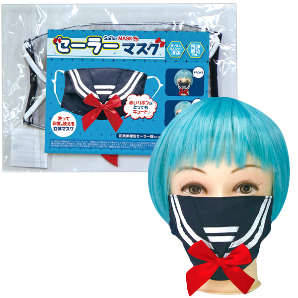 定番の紺色セーラーをそのままマスクにしたようなデザインが特徴!鼻から顎までしっかり覆い隠します。 飛沫対策や花粉、風邪予防として、コスプレ衣装のおともに、ビンゴ大会の景品やプチギフトにも最適です◎●メーカー型番:TAMS-696 ![]() --![]() --