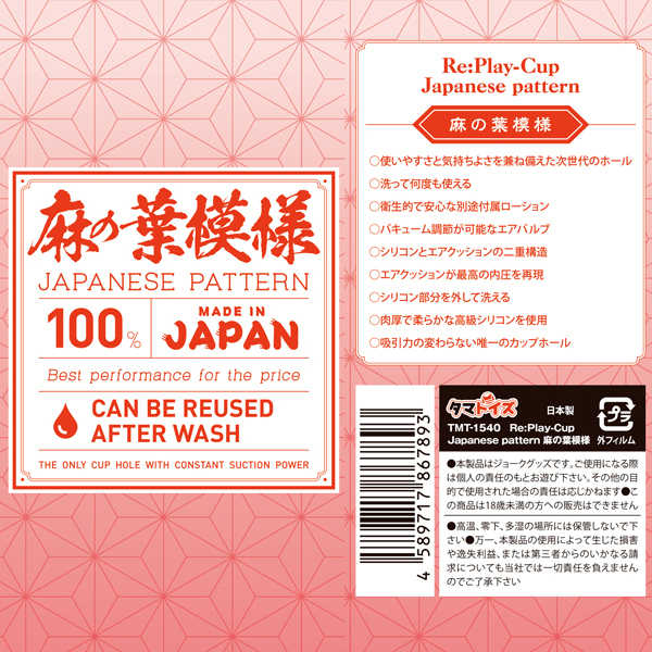 HOME > オナホール > オナカップ(使い捨てホール) > Re:Play−Cup Japanese pattern (麻の葉模様)