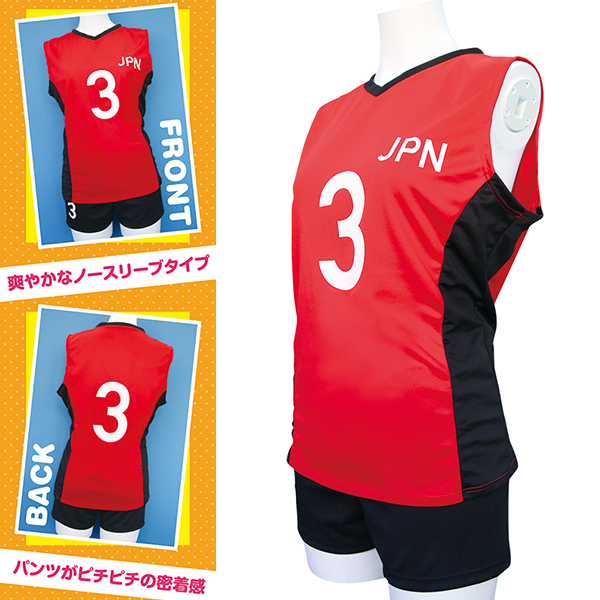 ![]() 本格的なバレーボールユニフォームは爽やかなノースリーブタイプ。