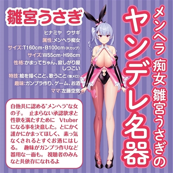 ![]() 人気VTuberでメンヘラ痴女でもある雛宮うさぎのヤンデレ名器をイメージした非貫通型オナホ「雛宮メンタルクリニック 雛宮うさぎ」です。
