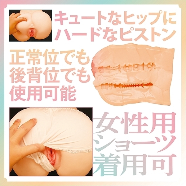 手にした瞬間その柔らかさに感動!細部までこだわった至高の触感は本物のお尻の柔らかさを完全再現。 安定感抜群の据置型ホール、2穴使用可能、触り心地は息を呑むほどのリアリティで、キュートなヒップにハードなピストン!正常位でも後背位でも使用可能。 ムッチリ肉感あふれる触り心地。 女性用ショーツ着用可 ![]() --![]() --