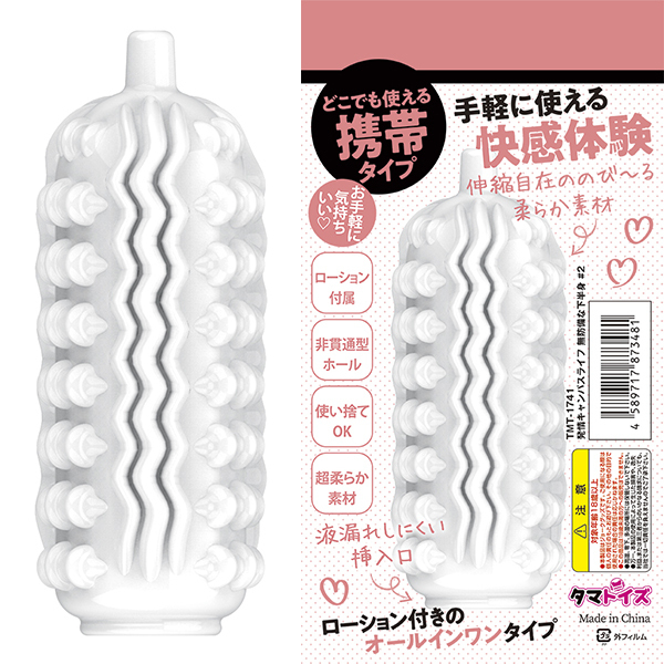 ヌルヌル滑らかタイプ、ローション付きのオールインワンタイプ、肉厚な柔らかシリコン使用で手軽に使える快感体験。 伸縮自在ののび〜る柔らか素材、液漏れしにくい挿入口。 セット内容:非貫通式ホール、ローション●メーカー型番:TMT-1741 ![]() --![]() #2![]() 非貫通型 パッケージ:18.0×11.0×6.5cm 本体:11.0×5.0cm 重量:65g![]() [ BACK ]
