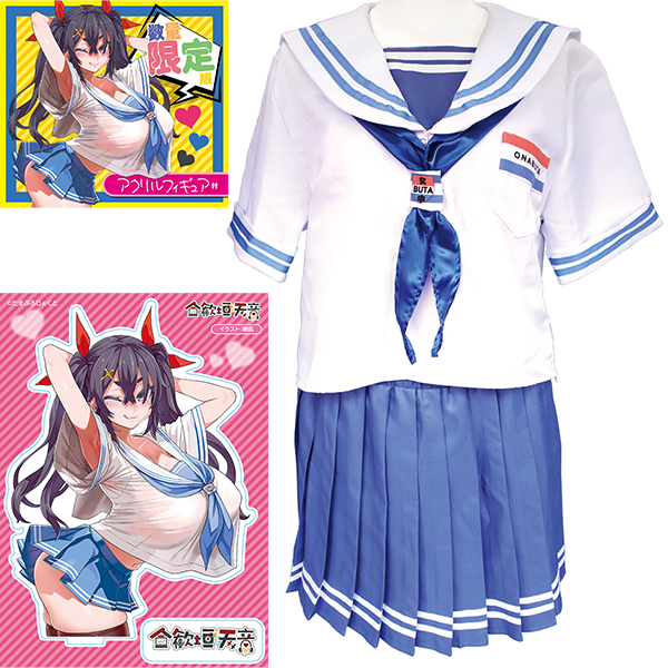 ![]() 人気VTuber合歓垣天音との特別なコラボレーションで生まれた一品です♪キャラクターのセーラー服を細部まで忠実に再現し、ファンにとって魅力的なデザインとなっています!爽やかな半袖タイプで、清涼感溢れる仕上がりが特徴です♪おとこの娘用に特別に設計されており、2Lサイズとして提供されています♪ポリエステル100%の素材を使用しているため、軽くて丈夫で、長時間の着用でも快適な着心地を実現しています♪こちらの数量限定版には合歓垣天音さんのアクリルフィギュアが付属しており、ファンにはたまらないコレクターズアイテムとなっています! TAMS-1227