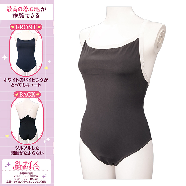 ![]() かわいらしさと清潔感を兼ね備えた紺色スクール水着です!フィット感のある生地がしっかりと体に寄り添い自然なシルエットを演出します♪ホワイトのパイピングがアクセントになりスポーティーかつキュートな印象をプラス!伸縮性のある素材で動きやすく快適な着心地を実現♪男性用Mサイズ相当の2Lサイズ設計でおとこの娘にもぴったりフィット!バスト88〜100cm・ヒップ90〜102cmに対応しています♪ワレメ風の立体カップ構造により♪衣装としての完成度を高めています!コスチュームやパフォーマンス用としてもおすすめです♪●TMT-1837