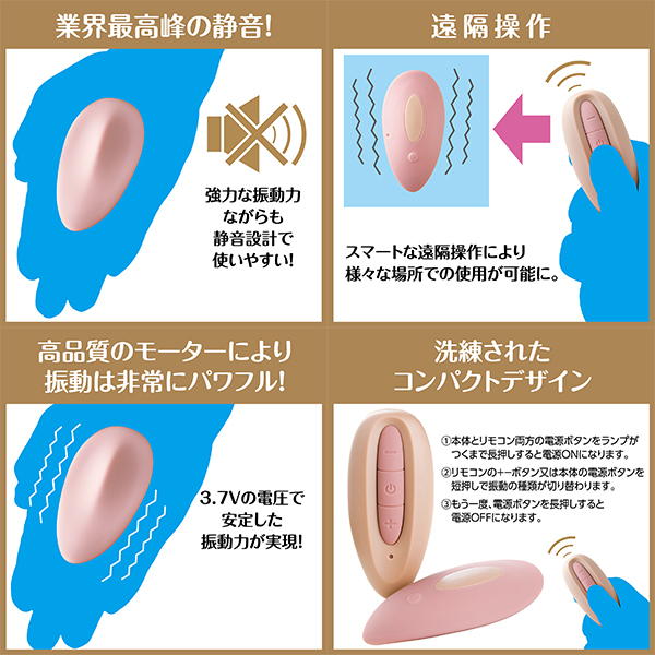 〜シックで清潔感のある美カーブボディ〜美しいカーブでデリケートゾーンを包み込む。 リモコンコントロールで、一人でもゆっくり、敏感なポイントにアプローチ出来ます。 ラグジュアリーな見た目で、初めての方にもでも受け入れやすいアイテムになっています。 ◎遠隔操作→スマートな遠隔操作により様々な場所での仕様が可能に。 ◎業界最高峰の静音→強力な振動ながらも静音設計で使いやすい。 ◎高品質のモータにより振動は非常にパワフル!→3.7Vの電圧で安定した振動力が実現◎10種の振動パターン→ボタン式でスムーズに調整可能です!◎シリコン素材→可動部シリコン素材採用でデリケートゾーンへの使用も安心。 ![]() hishi![]() --