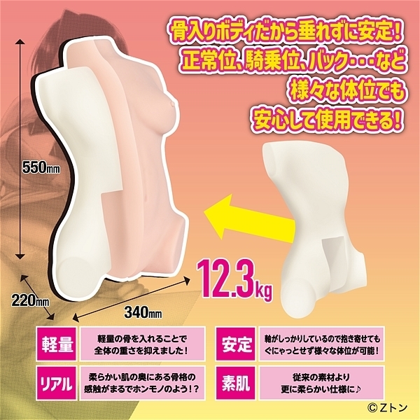 マガこれでしか味わえないリアルな触感が没入感を高めます!◎全長55センチで大満足の抱き心地。 ◎大型ボディホールなのに重量は12.3kgと扱いやすい!◎「大きいのに軽い」を実現した独自構造骨格を採用。 垂れずにあらゆる体位で使えます。 ◎従来の素材より更に柔らかく!サツキの柔肌を再現!◎運動神経抜群のサツキのボディを再現したスポーティー美クビレボディ!◎魅惑の2穴構造!もちろんそれぞれ独自の内部構造となっています。 ◎120mlボトルローション付き ![]() --![]() --