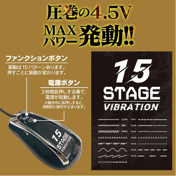 15段階もの振動変化があるローターを装備!多種多様な快感を楽しめますので、アナル初心者はもちろん、中級者や上級者でも十分にお楽しみいただけます。 ![]() --![]() --
