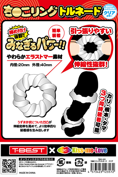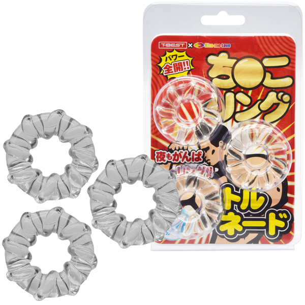 ![]() <T-BEST×KISS-ME-LOVE>夜もがんばリングで大人気のやわらかメンズリング「ち●こリング」が、トルネードになって新登場!今度のち●こリングは「特殊形状3個セット」!トルネードデザインのリングを3つもセットにしました!うずまき状に巻き付いた凹凸が伸縮率を高めてより効率的な装着感を生み出します。