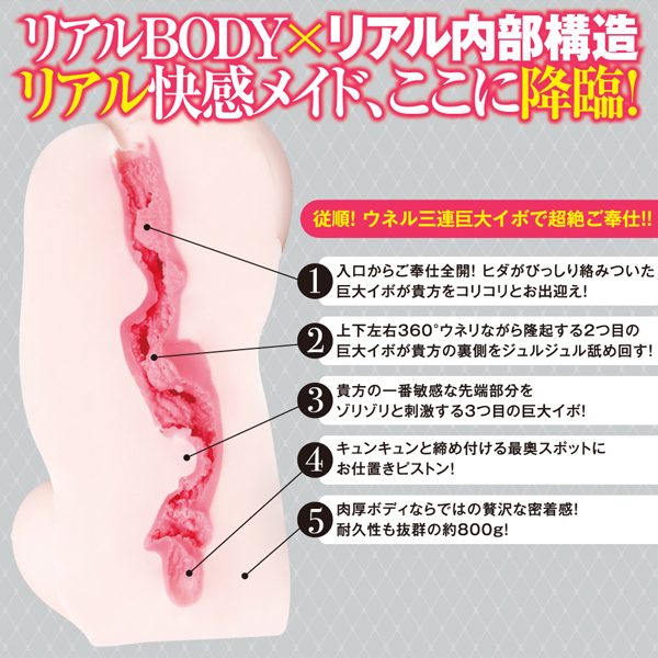 ![]() ずっしり肉厚!重量約800g!極上ダイナマイトBODYのご奉仕メイドが降臨!!巨乳メイドが完全従順!何でも言うことを聞いてくれる従順過ぎるメイドちゃんの中は、ウネル三連巨大イボで超絶ご奉仕してくれます!ぷにコリ超リアル挿入感を楽しんでね!最高の揉み心地のふわふわおっぱいもお気に召すままモミモミしてくださいませ!直接肌に触れるものだから安全性と感触にこだわった高品質なエラストマーを使用しています。