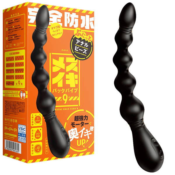 ![]() 超強力モーターで奥まで響く!5連球の凸凹刺激&9種類振動が絶頂へ導くIPX7等級の完全防水アナル用のメスイキバックバイブ。