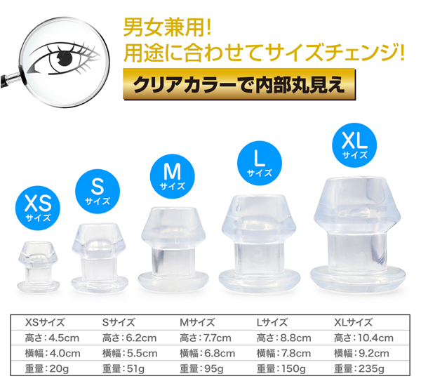 ![]() 日本人向けに作られた男女兼用拡張トンネルプラグ!内部穴360度見渡せる極上の光景幅広いプレーが可能な多用途プラグ柔軟性と形状保持力を備えた透明色の拡張アイテムです。