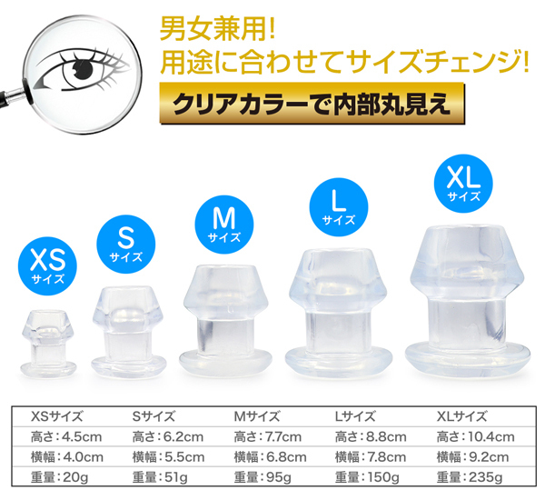 ![]() ビックサイズのアナタにピッタリ装着出来る!男女兼用拡張トンネルプラグ!内部穴360度見渡せる極上の光景幅広いプレーが可能な多用途プラグ柔軟性と形状保持力を備えた透明色の拡張アイテムです。