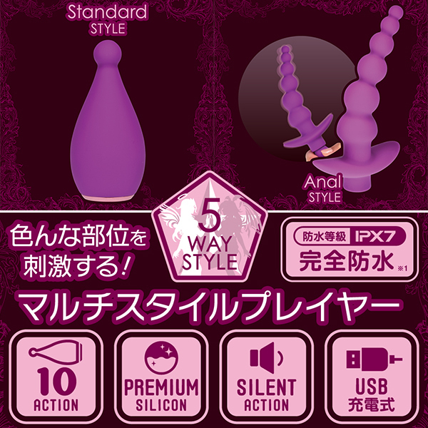 本体はスモールボールヘッドタイプと特徴的で、トータル5wayとマルチスタイルで遊べる高機能なローターとなっています♪本体部分とアタッチメントには高品質なシリコン素材を採用。 IPX7等級の高い防水機能に静音仕様を合わせ持ち、時間帯を気にせずお楽しみ頂けます!電源はUSB充電式を採用。 90分のフル充電で60分の連続可動が可能!本体先端のボール型部分はクリなどのピンポイント刺激に活用できて、3枚舌のアタッチメントを装着することでクンニのような快感も♪4つの爪のようなアームアタッチメントは乳首をホールドして刺激。 ボールが連なったアタッチメントはアナルビーズのような刺激もお楽しみ頂けます♪10パターンの振動と5WAYの使用スタイル!マルチに楽しめるシリコンローターをぜひお楽しみください。 ![]() --![]() --