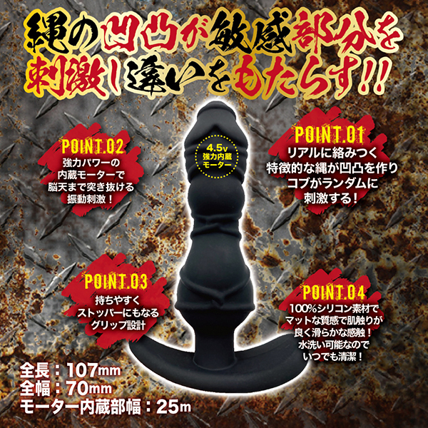 敏感な部分を強力な振動と独特な凸凹が刺激して悶絶必至♪4.5Vの強力パワー&10ファンクションシステム搭載&100%シリコンの強力イカセプラグ!抜き差しして楽しむも良し、挿れっぱなしでバイブ機能を堪能するも良しの優秀バイブです。 ![]() --![]() 緊縛![]() パッケージ:17.0×9.7×6.2cm 本体:10.7×7.0cm・モーター内蔵部幅2.5cm 重量:110g 電池:単四電池×3本使用![]() [ BACK ]