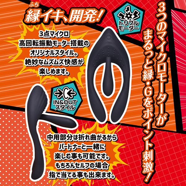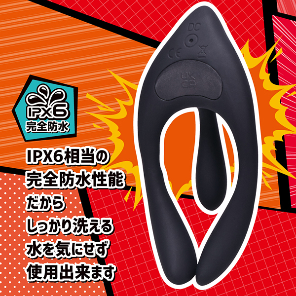 3つのマイクロモーターが外側とGを絶妙に刺激する!独特のムズムズ感が楽しめて、一人でもパートナーとでも楽しめる形状と肌触り滑らかなプレミアムシリコン素材が自慢♪IPX6相当の防水性能だからしっかり洗えて濡れながら使用可能!基本的には男性がコックリングとして装着し、Gスポットを振動刺激しつつナカも振動責めするという使い方がお楽しみ頂けます♪電源はUSB充電式でリチウムイオン電池を内蔵!プレイを邪魔しない静音設計でしっかりと満足させてくれます。 ![]() --![]() --