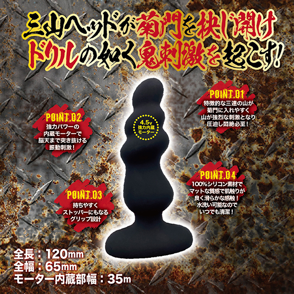 ![]() 菊門広げ挿入せよ!敏感な部分を強力な振動と独特な三山ヘッドが鬼刺激し悶絶必至!!4.5Vの強力パワー&10ファンクションシステム搭載&100%シリコンの電動アナルイカセプラグ登場!!強力パワーの内蔵モーターで脳天まで突き抜ける振動刺激!