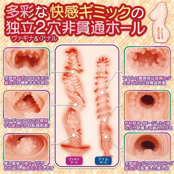 ViViDoll AKARIは造形美にこだわった「Real Figure Moldingシリーズ」の第6弾オナホールです。 ボディ内部に、抱き上げても反らずに直立する「StandUpフレーム」を内蔵したことで、騎乗位・駅弁などマニアックな体位でもお楽しみいただけます。 ViViDoll AKARIの全長は47センチと超大型で、これは「リアル小柄女性の等身大」に匹敵します。 総重量は「9.2キロ」と存在感あるボリューム、加えて反らずに直立する「StandUpフレーム」の効力により、臨場感溢れるリアリティあるプレイをお楽しみいただける等身大トルソーオナホールです。 ホールは「ヴァギナホール」と「アナルホール」の2穴をボディの中心に配置。 9.2キロの大型ボディによる「本物のような肉厚感」と6つの「個性ある快感ギミック」を存分にご堪能いただけます。 ViViDoll AKARIと一緒に三次元を超えた濃密な時間をお過ごしください。 保管に便利な専用発泡スチロールケース、オリジナルローション付属。 ![]() --![]() --
