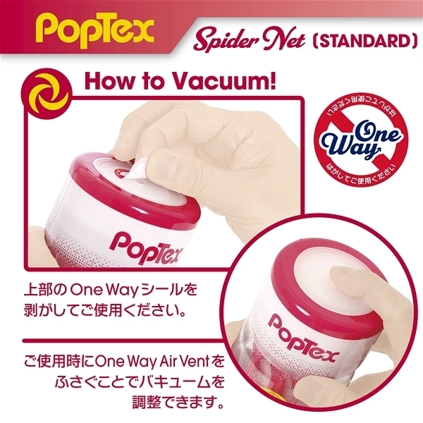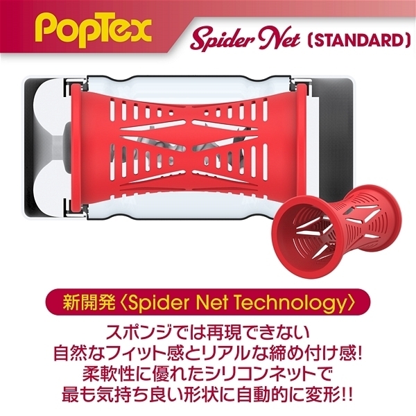 ![]() ポップテックススパイダーネットカップスタンダード<リアルな締め付け×ネットヒダ刺激の高機能カップホール>新開発SpiderNetTechnology搭載型カップホール!ホールを包み込む柔軟性に優れたシリコンネットで最も気持ち良い形状に自動的に変形することでスポンジでは再現できない自然なフィット感とリアルな締め付け感を実現しました!内部構造は網目状のネットヒダの中心にアクセントのイボ刺激のアクセント!強力に吸い付く最奥のバキュームスポットは天面の「OneWay」シールを剥がし空気を抜いて挿入することで内部のまとわりつき感をより楽しむことが出来ます。