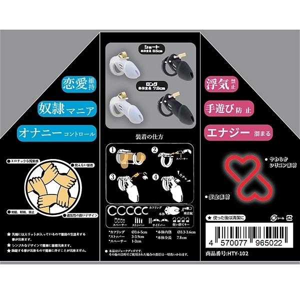 先端に排泄口があるので装着中も排尿が出来ます。 南京錠をすることで射●管理を確実に行うことが出来ます。 ロング・ホワイト ![]() ホワイト![]() ロング![]() パッケージ:18.0×7.0×7.0cm 本体:5.0×4.5×11.0cm 重量:130g![]() [ BACK ]