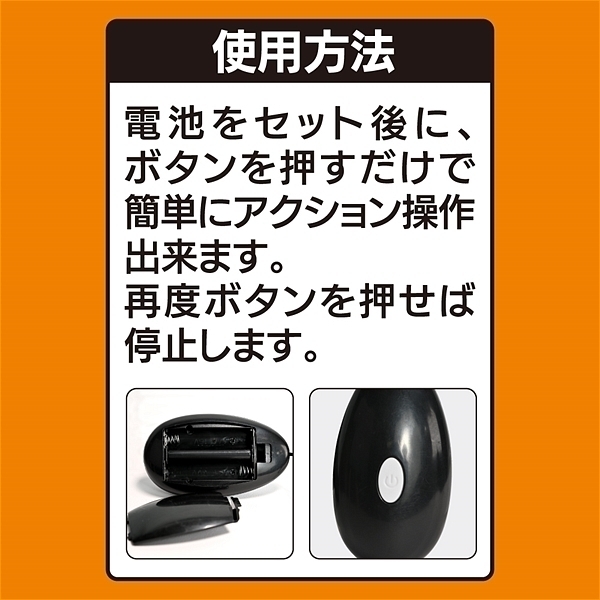![]() パッケージ:8.0×8.0×3.0cm 本体:ローター7.0×3.2cm・コントローラー7.8×4.2×2.2cm 重量:50g 電池:単四電池×2本使用![]() [ BACK ]
