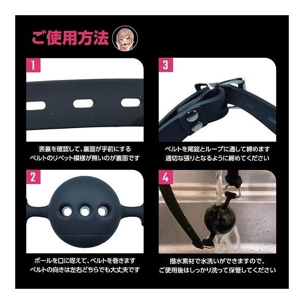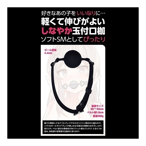 SMプレイの代名詞、SM専用ボールギャグ「SMシリコン玉付口枷」!言葉は喋れずにヨダレはだらだら、SMプレイでは欠かせない「さるぐつわ」をお手軽に始められるSMアイテムです。 シリコン素材製なので、丸洗いが出来てメンテナンスも簡単、清潔感もばっちりキープ。 シリコン特有のサラリとした肌触りだから、不快感もありません。 さらに、柔らかめのシリコン素材を採用、柔軟性も高くフィット感もバツグンで、初心者の方でもストレスなく装着しできます!ボールを口に咥えたその姿はとても官能的で、羞恥心を強く煽り、嗜虐性を高めるはず。 ボール直径は、標準サイズとなる44ミリ。 着用サイズは36〜52センチなので、どなたでも適切に着用出来ます。 ベルト部のリベットデザインや、バックル部のつく棒が丸形仕様など、細かいところまで作り込んだ商品設計。 ビギナーの方でもSMプレイの魅力を堪能できる、ボールギャグの決定版です!●カラー:ブラック ![]() BLACK![]() --