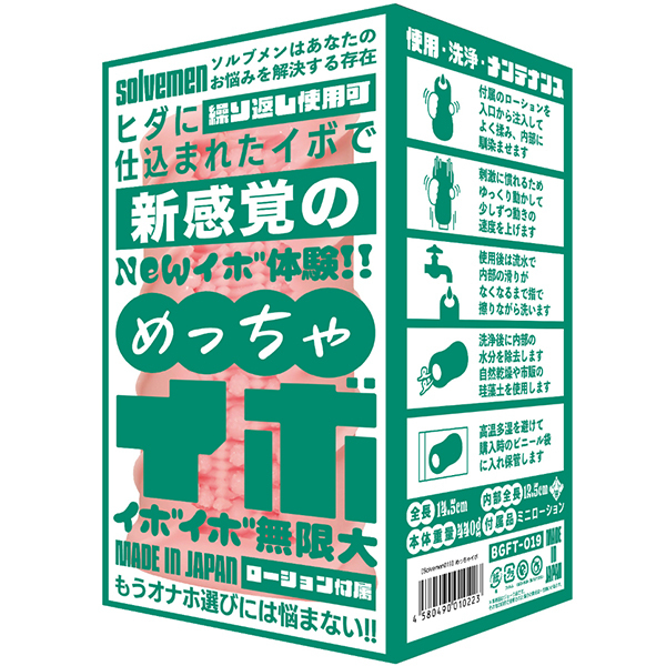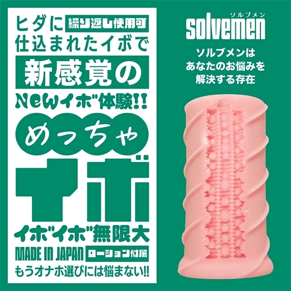 「今日はイボで刺激的に」「今日はヒダでやさしく」同じものを使い続けたいときもあれば、1日おきに違うものを使いたいときもある。 そんな気まぐれに全力で応えたいです。 それがソルブメンの生まれた意味だと思いませんか?今回のテーマは「めっちゃイボ」となります。 敢えてイボだけにしなかった意図をお教えしましょう。 ヒダのなかに確かな存在感、イボは本当にイボ。 それは間違いないのです。 しかし敢えてヒダの群れにイボを配置する事でしか生まれない、極上の快感ハーモニーがあることをどうしても感じて欲しかったのです。 あなたはオナホ選びに悩む必要はなくなります。 あなたのためにソルブメンがいるのです。 安心安全の日本製で繰り返し何度でも利用が可能です。 ![]() --![]() --